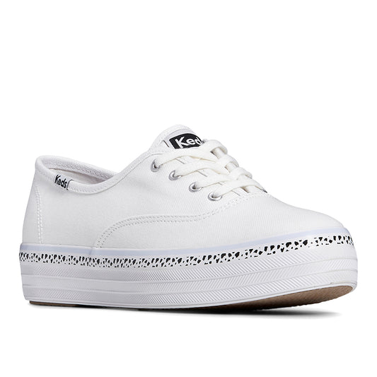 Keds Women's The Platform Canvas Spot Stripe Foxing Sneaker White (WF67826)