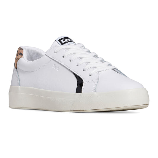 Keds Women's Pursuit Leather Leo Sneaker White/Tan (WH67811)