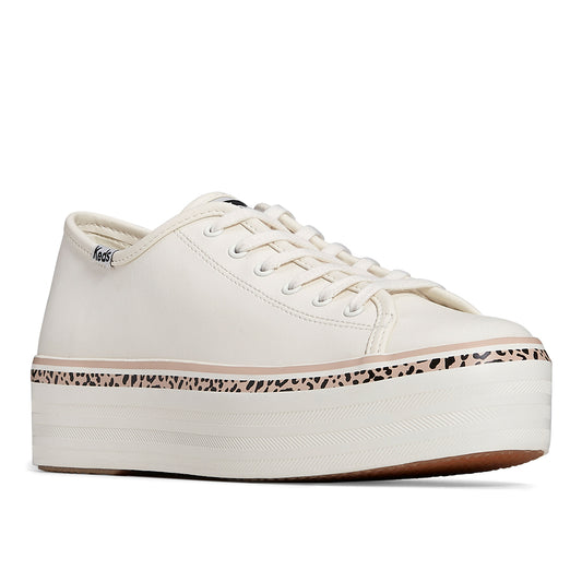 Keds Women's Triple Up Leather Leo Stripe Foxing Sneaker White/Tan (WH67846)