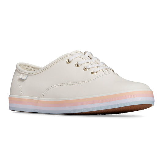 Keds Women's Champion Leather Foxing Stripe Sneaker Egret/Multi (WH67932)