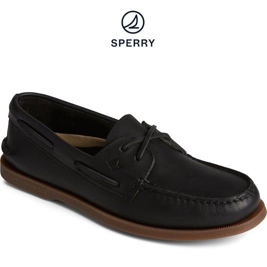 Sperry Men's Authentic Original™ Cross Lace Leather Boat Shoe Black (STS24956)