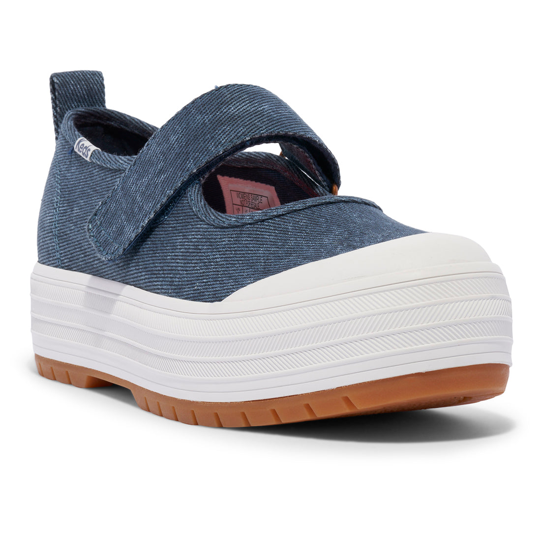A classic Mary Jane gets a perfectly pairable mod makeover. Introducing the Keds Mary Jane. With all the charm of the original silhouette, this denim sneaker with a hook-and-loop closure will be the one you're reaching for on repeat. Lightweight 1-inch platform bottoms with a lug outsole offer an edgy update on this timeless style, while a supersoft footbed and breathable lining keep you comfy throughout the day. Pair these with denim, maxi dresses, and the season's minis with tights for an elevated but understated look.